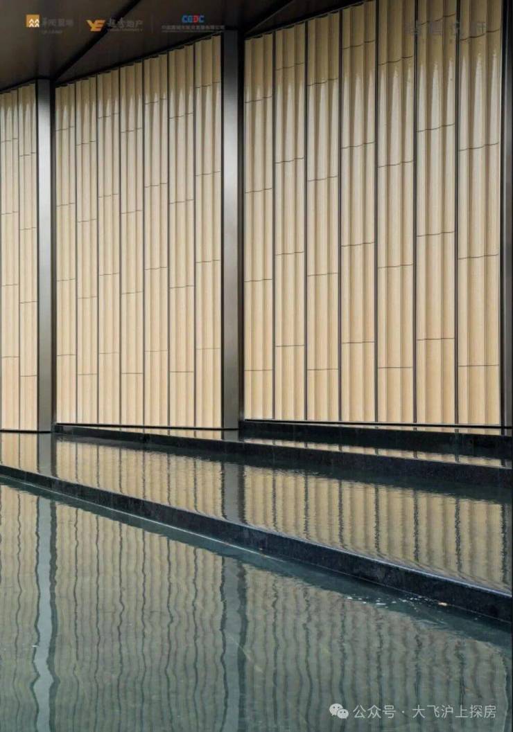 入口处选用了大面积冰裂琥珀釉陶板,背后的工序非常复杂,从选材到运输,最后拼接,每个环节都是高成本和高技的工艺工法。