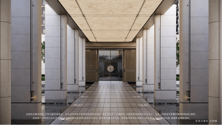 双轴线的设计,充分拓宽了视野面与观赏点位,环形回廊、精神游廊与下沉庭院通过立体景观平台相融,又创造出隔岸听泉的诗意场景。在会所、在架空层泛会所、在归家路上,每个重要生活触点,业主都能拥享独特景观和欣赏视野。
