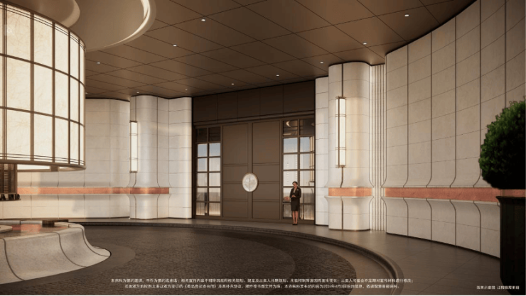 借鉴帝国大厦顶部收缩的垂直美学、立面构成以及沙逊大厦强化基座的稳定感,在设计上实现了经典与现代的融合。首层通过硬朗直线呼应柔和曲线勾勒,辅以温润石材与古铜色金属线条融合,打造东西方美学共融的艺术藏品