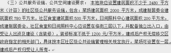 另外,规定各种公共服务设施不得少于3490平方米,其中包括,菜场、居委会、社区食堂等配。