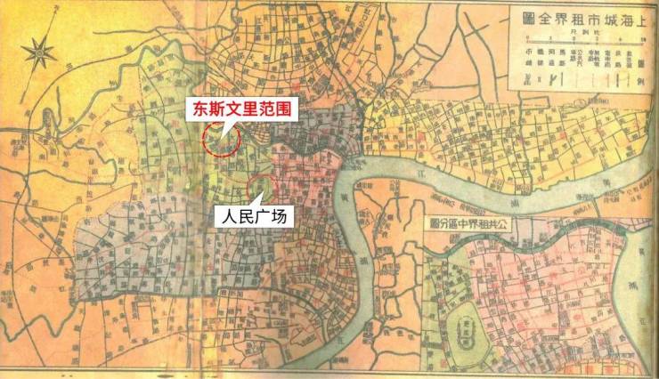 而 步行可达人民广场, 毗邻苏州河环境优美的 东斯文里 早已是烟火气息十足的居住区。