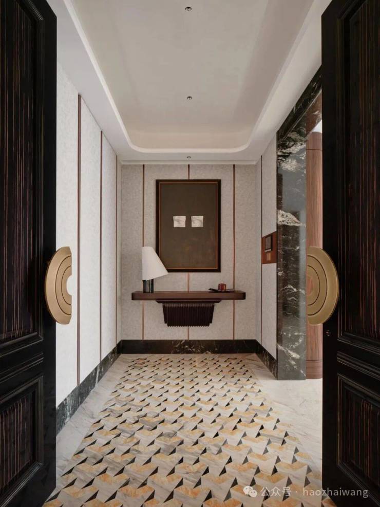 室内石材均由【英国皇家豪邸御用设计专家」的1508 London亲自挑选,在铺装前采用工厂预铺方式进行对纹编号,保证整体色泽纹路一致,每一处空间都精心带来不同的石材拼花。