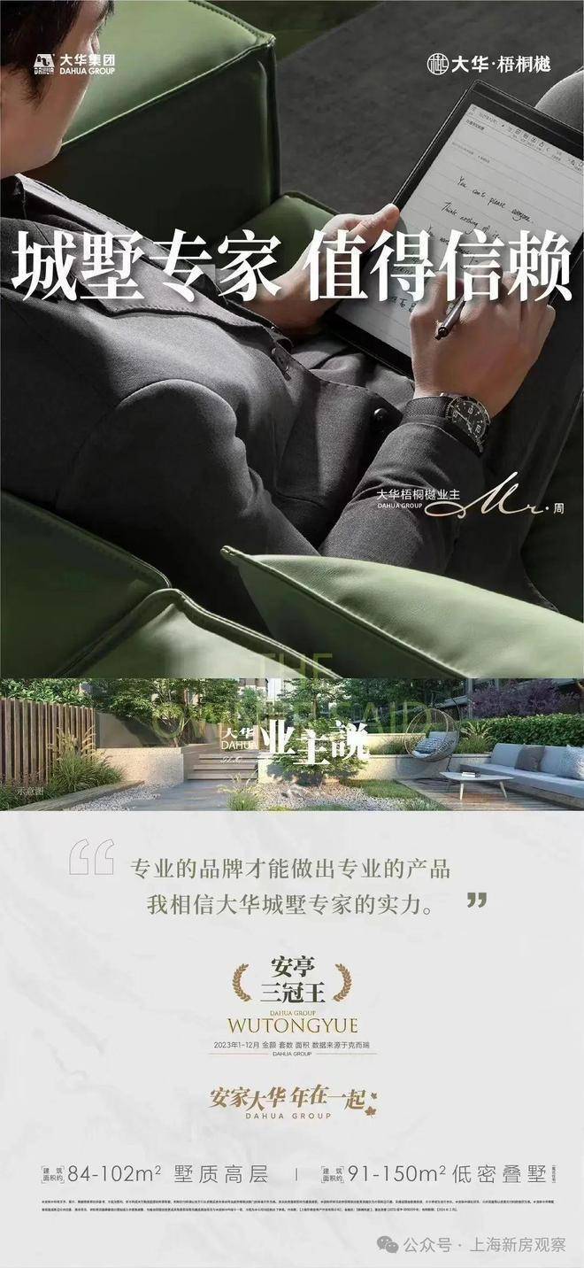 大华梧桐樾售楼处热线:400-9955-415☎️☎️✅✅《官方认证》是大华集团带着深耕嘉定的决心,首入嘉定的第一子,也是大华城墅专家秉承着大华城墅迭新的「墅立四观」、「墅境九制」、「墅居六艺」价值主张。打造的第五代梧桐系城墅作品,旨在赋新大华高端城墅版图,迭新嘉定墅居享受,开篇一座嘉定城的新传奇。