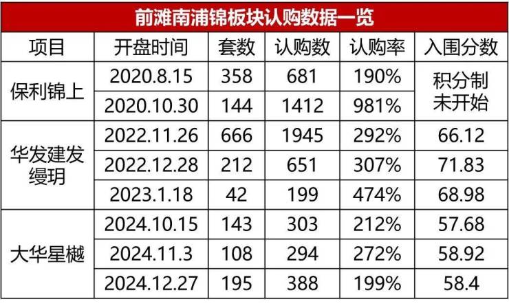 从2020年至今,浦锦板块一直逢开必爆,2020年入市的保利锦上在没有积分制的年代创下千人摇的神迹;之后的缦玥、大华星越都次次触发积分!