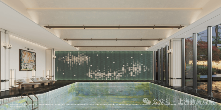丰盛会所空间:约2500㎡莫奈花园会所,包含泳池、健身房、瑜伽室、水吧台、私宴厅等“多元生活集”,满足全龄段业主的精致生活需求。