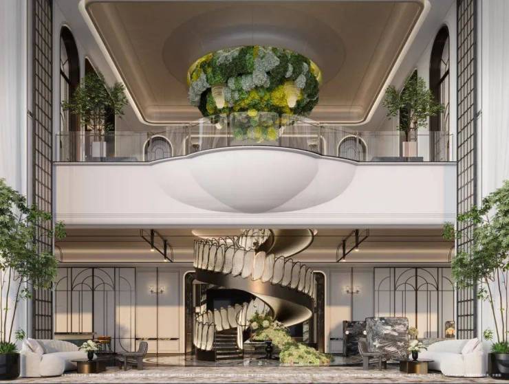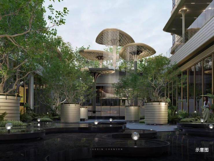 在景观打造上,在日常所及之处用自然绿意点缀创造出都市中的“浮岛美学园林”,层层递进的秩序之美,传递生活与归心的仪式感。