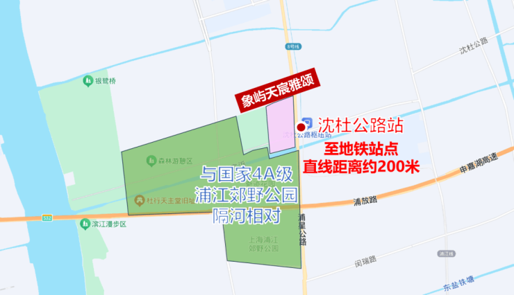 象屿浦江镇项目坐落于闵行浦江镇,距离黄浦江约5.6公里。东侧是规划商业用地,未来可能会打造TOD商业综合体,潜力无限。