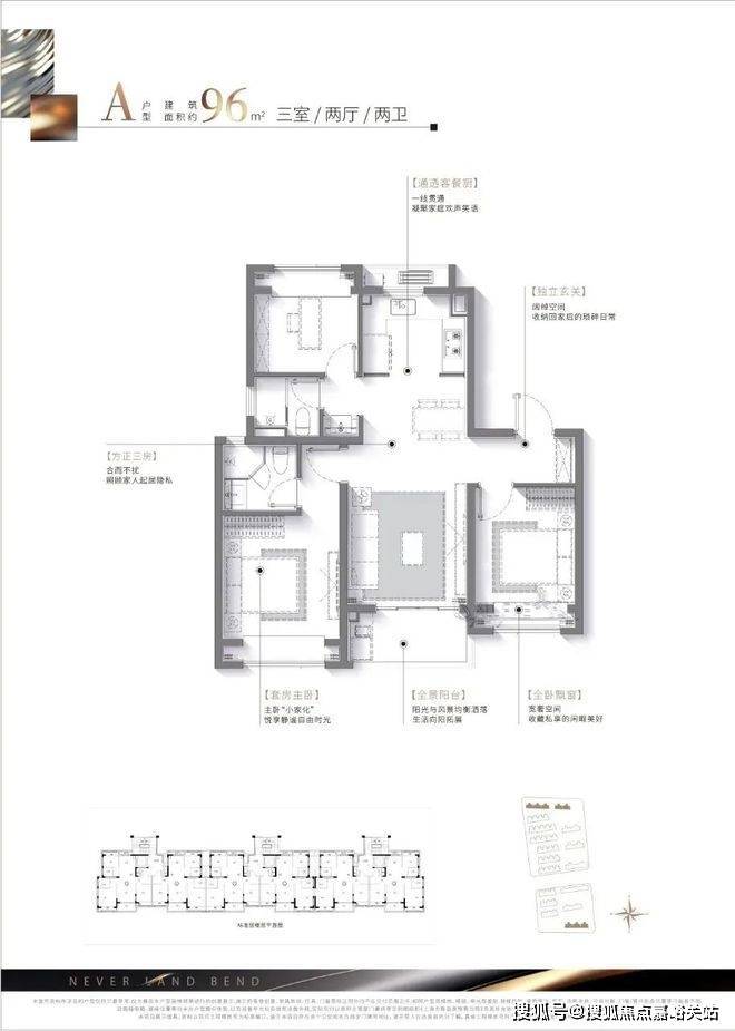 项目建面约96㎡3房是市面上更受欢迎的飞机户型。