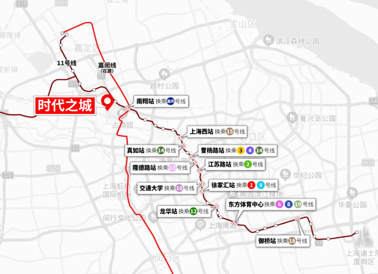 从陈翔公路站出发,时代之城的业主未来6站直达中环、直达与徐家汇齐名的城市副中心真如。