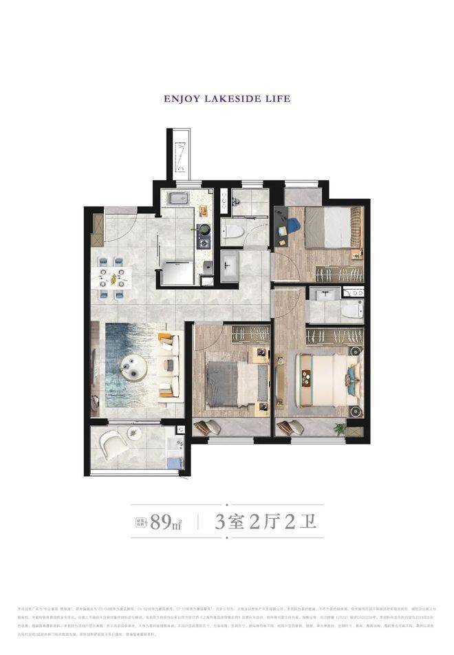 户型上,建面约89㎡做到了罕见“3房1.5卫”,能保证小家庭很长时间都不用换房。同时三开间朝南、三卧飘窗、次卫干湿分离、主卧套房都是标配,实用性高。