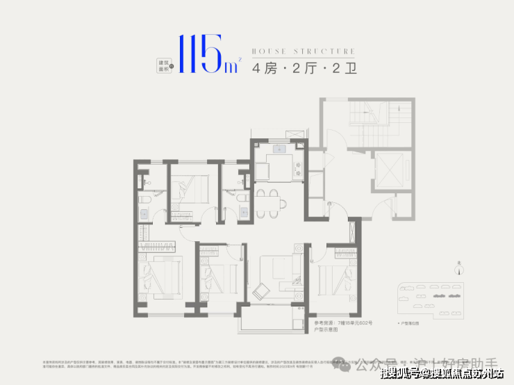 建面约115㎡4房2厅2卫,招商象屿·星耀翠湾预约热线☎:400-8080-420✅✅做到了四开间朝南+全卧室带飘窗+主卧套房设计,一步到位的大四房户型。兼顾大4房的功能性和空间尺度,非常难得,更适合四口之家或三代同堂家庭居住。