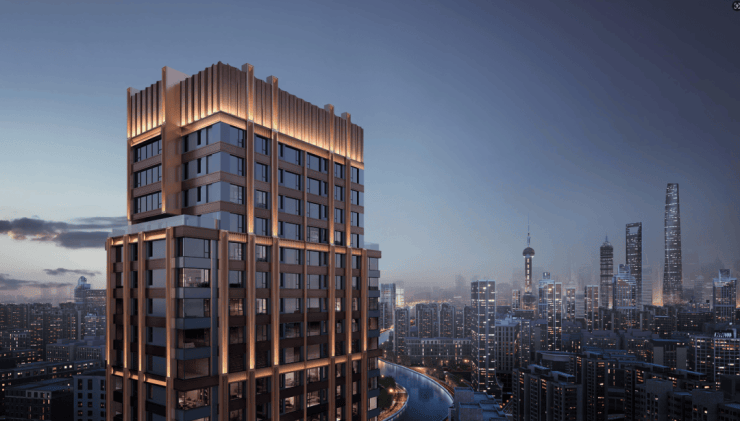 观家新房注意到,在外立面上,项目与外滩万国建筑博览群的建筑风格一脉相承,为ARTDECO风格,三段式立面,塑造出有立体感的韵律天际线。材质方面不计成本采用古铜色、深灰色+铝板、镜面铝板的完美搭配,再镶嵌竖向线条和立面层次,威仪肃穆。