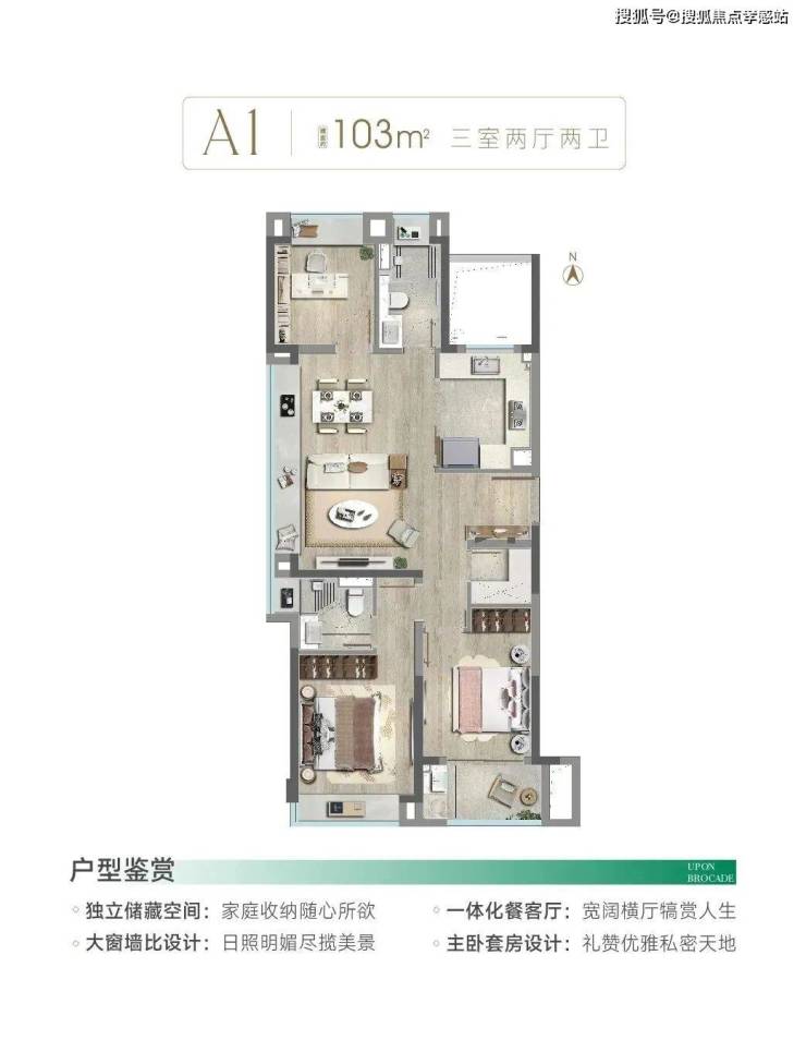 ✖️✖️ 盛青云锦售楼处热线☎️☎️:400-9966-940✔️✔️ 建面约103㎡三房户型图▼