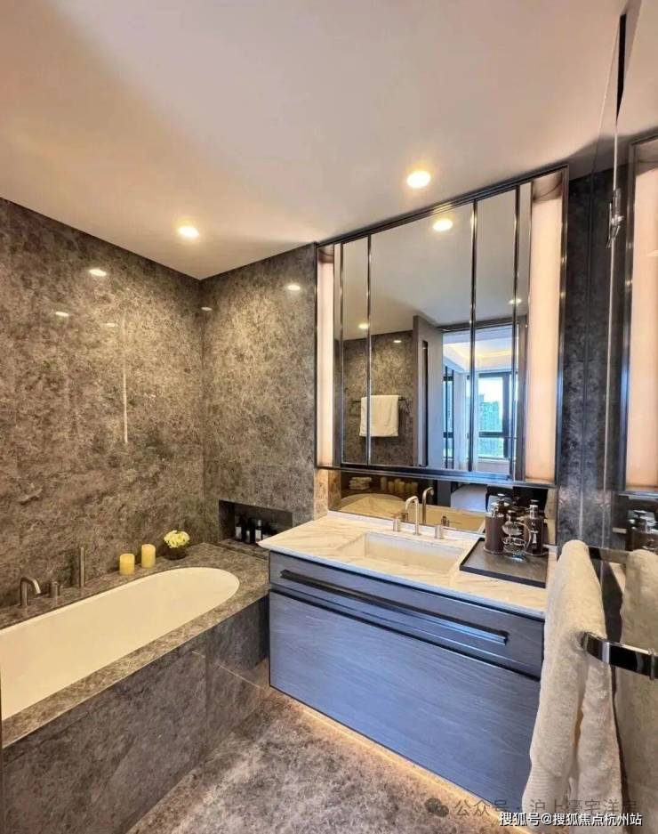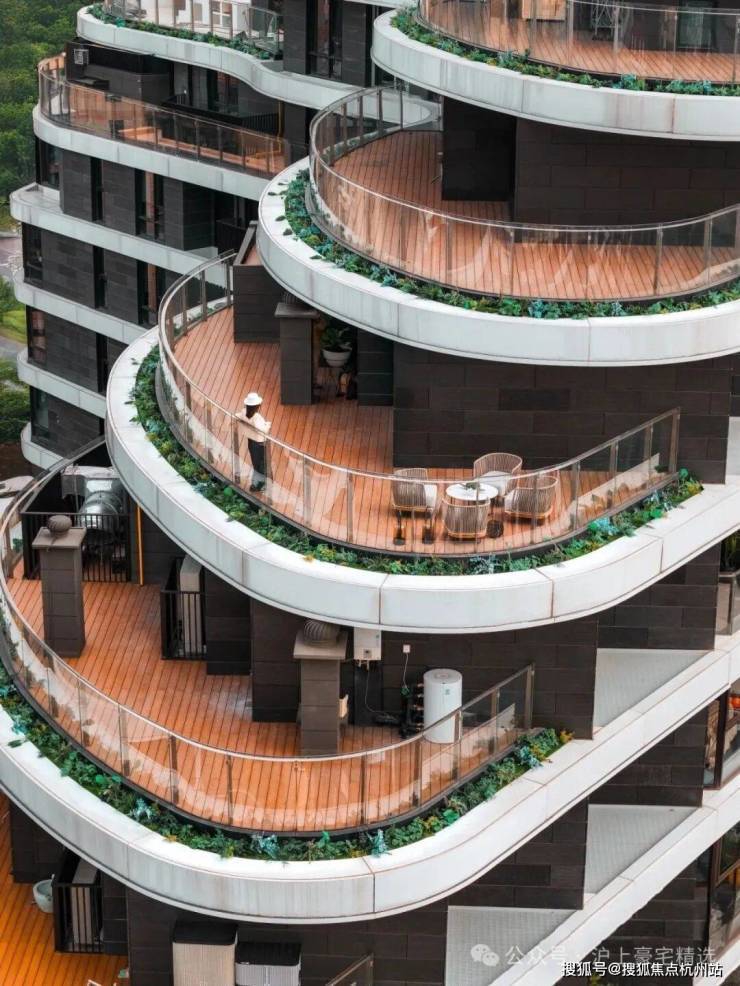 外立面通过石材、铝板及真石漆相结合呈现 十足的未来感 。在有限的地块内,建筑大师及设计团队反复研究建筑方案,最终巧妙的将江景与纯现代外立面相融合,呈现 大露台环幕景观视野 ,使居住者能够拥享临岸滨江风景。