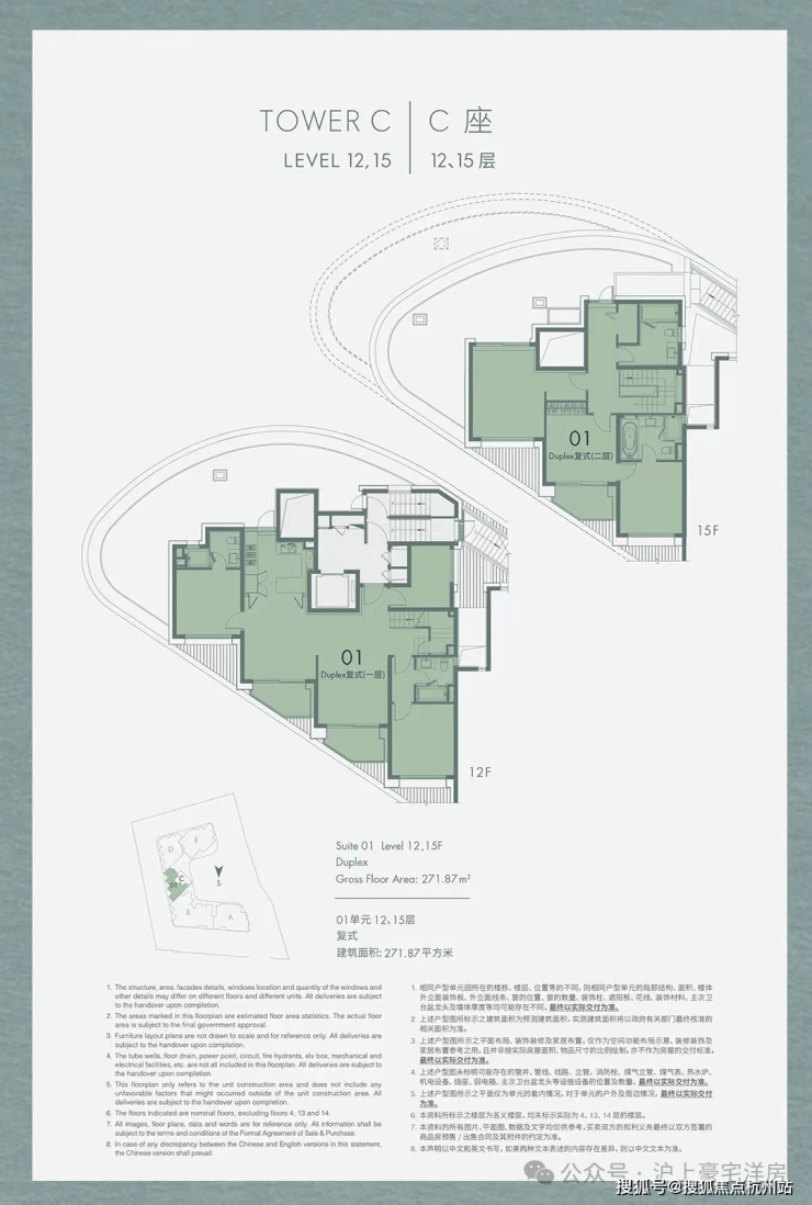建筑面积:271.66平米双露台顶层复式(私享独立电梯厅)