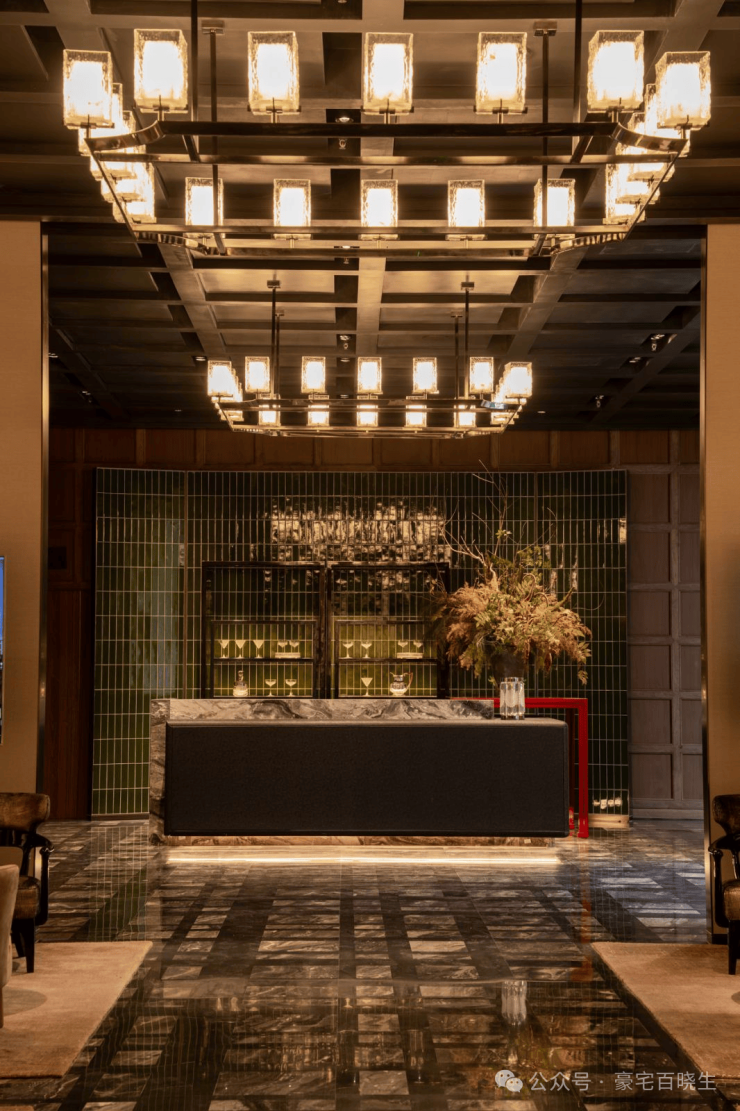l又如拾玖间地下会所水吧背景墙的景德镇冰裂瓷,近千度窑火烧制,诉说时间的答案;会所中大量软包皮革,采用雕花皮革纹,道道工序,样样精心,结合当代摩登美学,营造值得经久回味的本色。