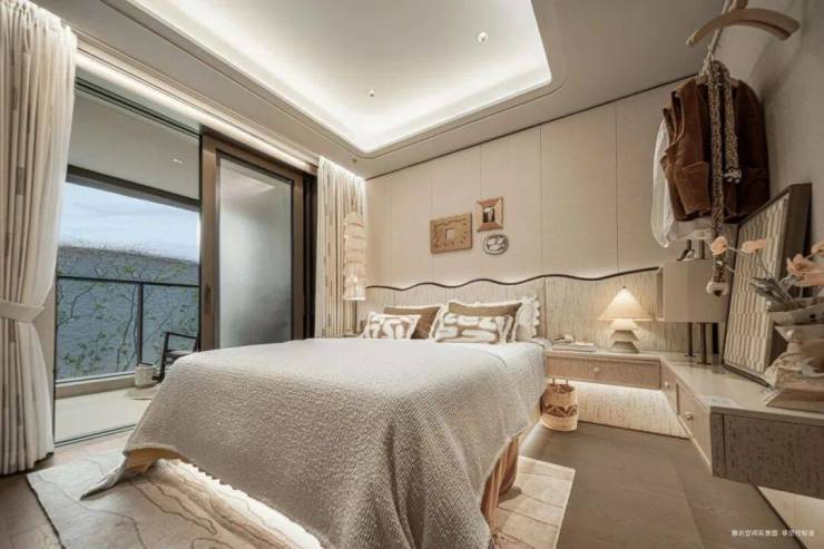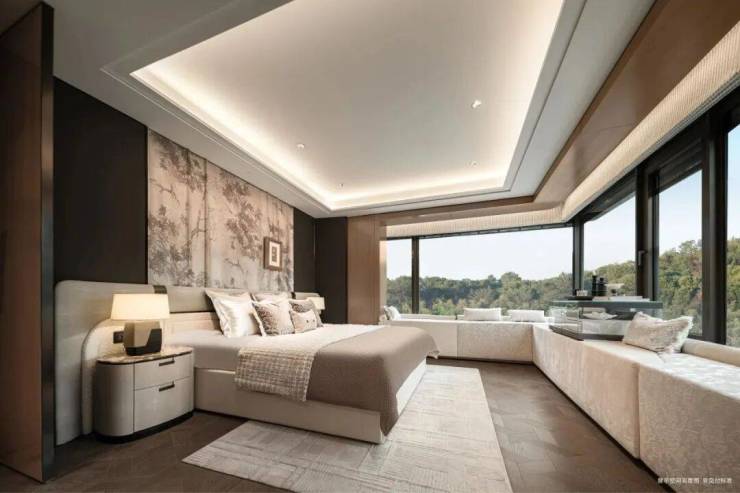 主卧全面升级:酒店行政套房级衣帽间+卫生间+奢阔休憩区,4米面宽主卧空间,床尾还能摆下小沙发与台灯,给主卧一个静谧私享空间。