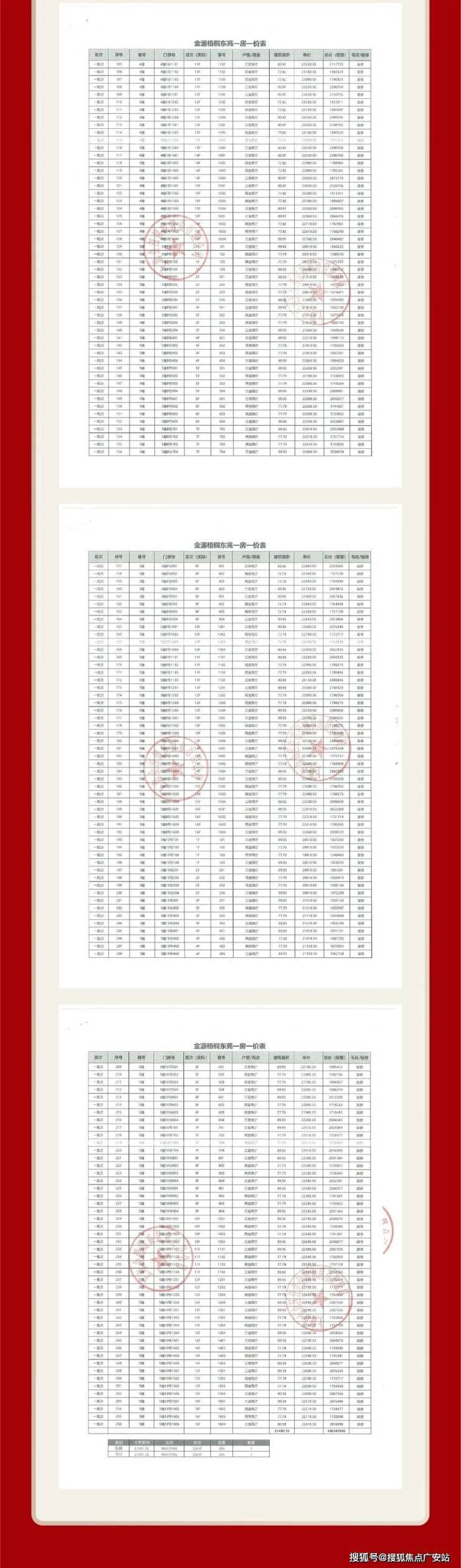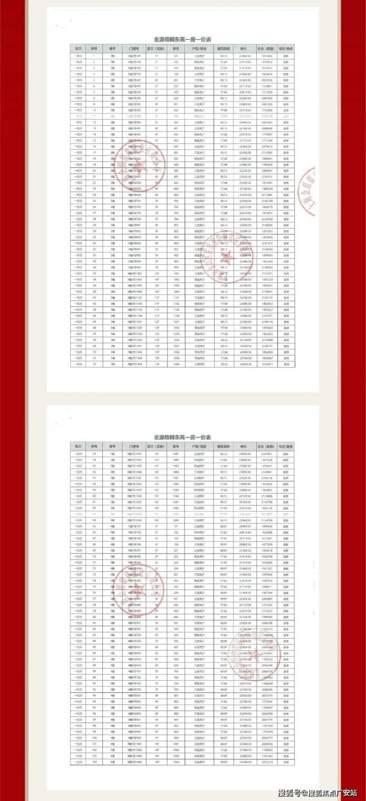 项目一房一价表