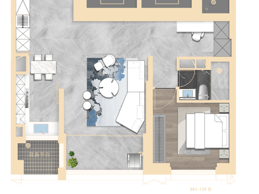 303㎡ 四房:2 梯 1 户,私享梯厅,5 开间朝南,双卧套房,主卧四分离卫浴。