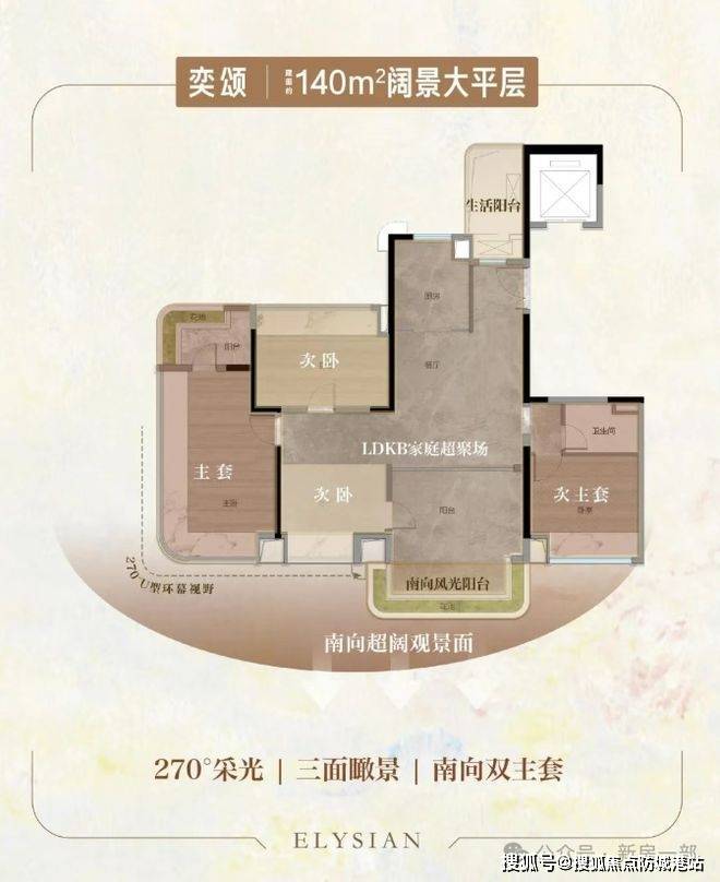 户型主打改善型大平层,主力在140平方米左右,基本都是四房双主套布局。空间分配方正,主卧、次卧开间都比较大,适合三代同堂或者对居住舒适度要求高的家庭。其中6号楼定位园景楼,位置最优,三面环景。高区视野开阔,能同时框住小蛮腰地标、琶洲西区天际线和社区内部园林;低区推窗就是主题花园和大围公园绿意,景观价值更高。这类稀缺单位数量有限,属于项目里的“藏品级”货源。