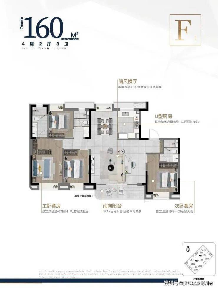 总价约 498-542 万元,适合三代同堂或多孩家庭。四房设计功能分区明确,双联阳台连接观景露台,视野开阔;主卧设有步入式衣帽间,收纳能力强大;南北通透、全明格局,通风采光俱佳。