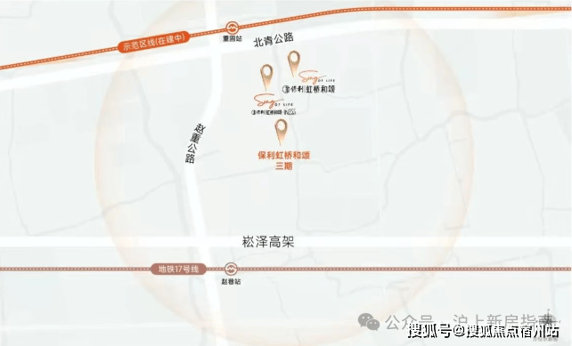 项目距离示范区线轨交站点(直线距离约600米),整个住宅片区,虹桥和颂·IN255处在靠近轨交站点的钻石位置。