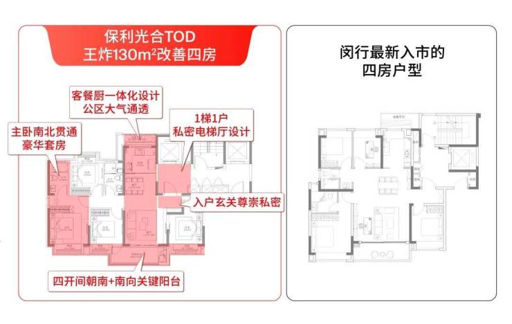 土拍重塑了上海的新房逻辑,但也让开发商进入了疯狂卷产品的时代,即使如此,相比市面上最新的四房产品(下图为闵行最新正在认购的4房户型图),保利光合上城这个建面约130㎡4房依旧能打,在各个层面都达到了市场前沿水准!