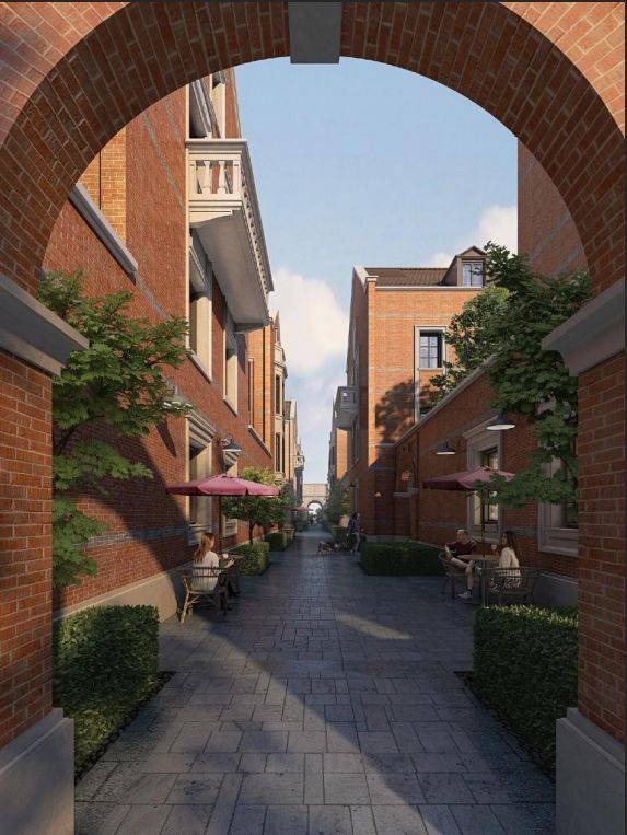 项目由GOA大象设计创始人陆皓先生操刀,汲取外滩西式古典建筑风格,以红砖为主材,复刻老石库门的浪漫风貌,力求打造为一处“新时代里弄住宅”。
