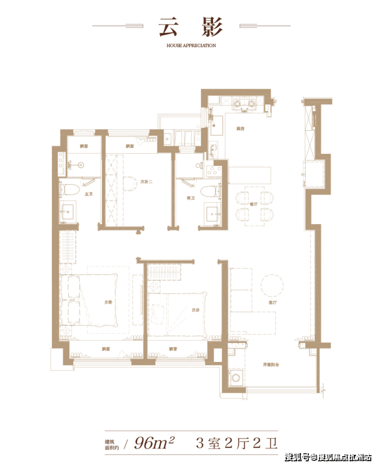 产品类型:约96㎡三房两厅两卫,约127㎡四房两厅两卫