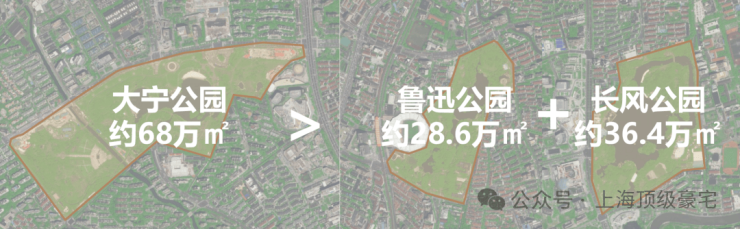 大宁公园约68万平,浦西中环内面积最大的公园。与此同时,鲁迅公园占地面积28.63万平,长风公园占地36.4万平。