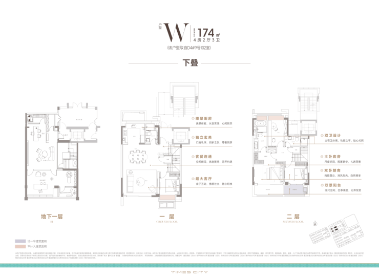 174m²下叠,挑高的宽绰地下室+公共绿地,真正的别墅享受: