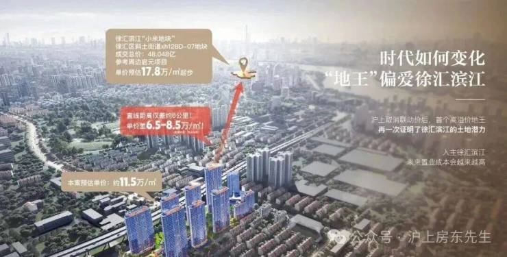 去年8月份,徐汇滨江原小米地块以30%溢价率触顶成交,折合楼板价约13.1万,轰破时隔八年的全国地王记录!业内预测最终售价可能会超过18万+!