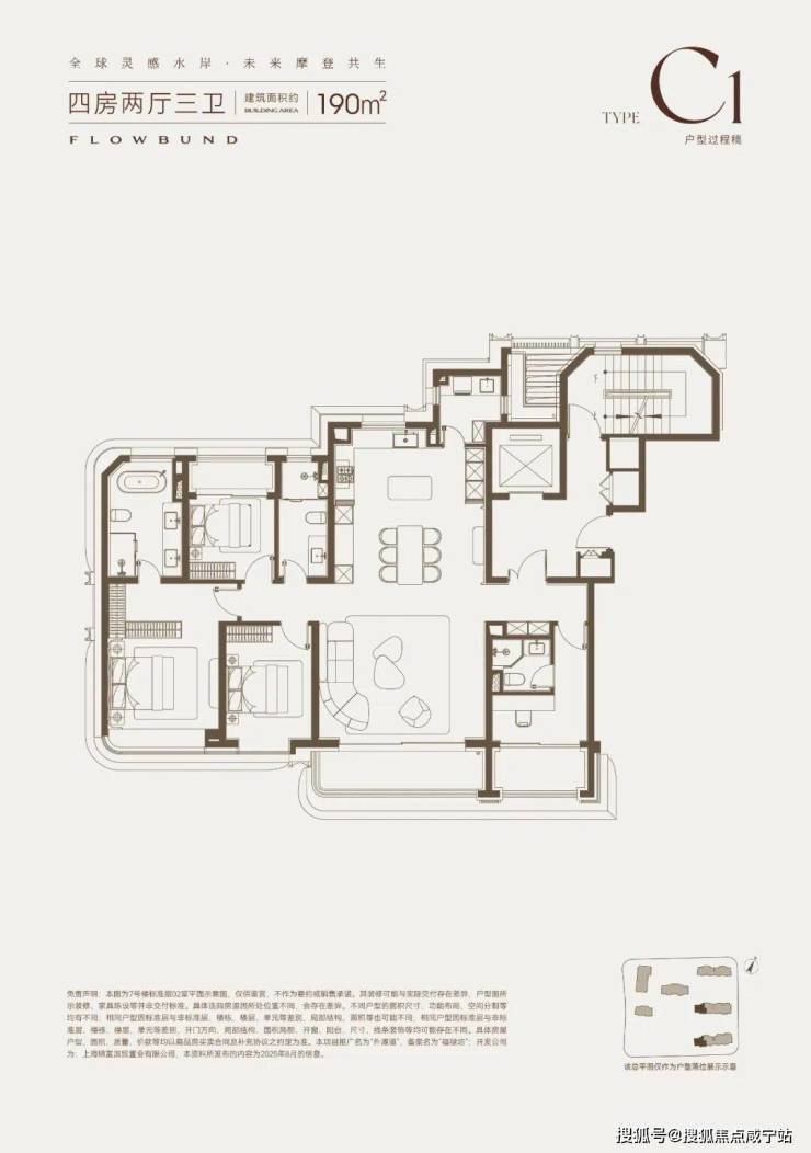 建面约190㎡四房,约3.15米的层高,塑造出极具立体感的纵向空间;