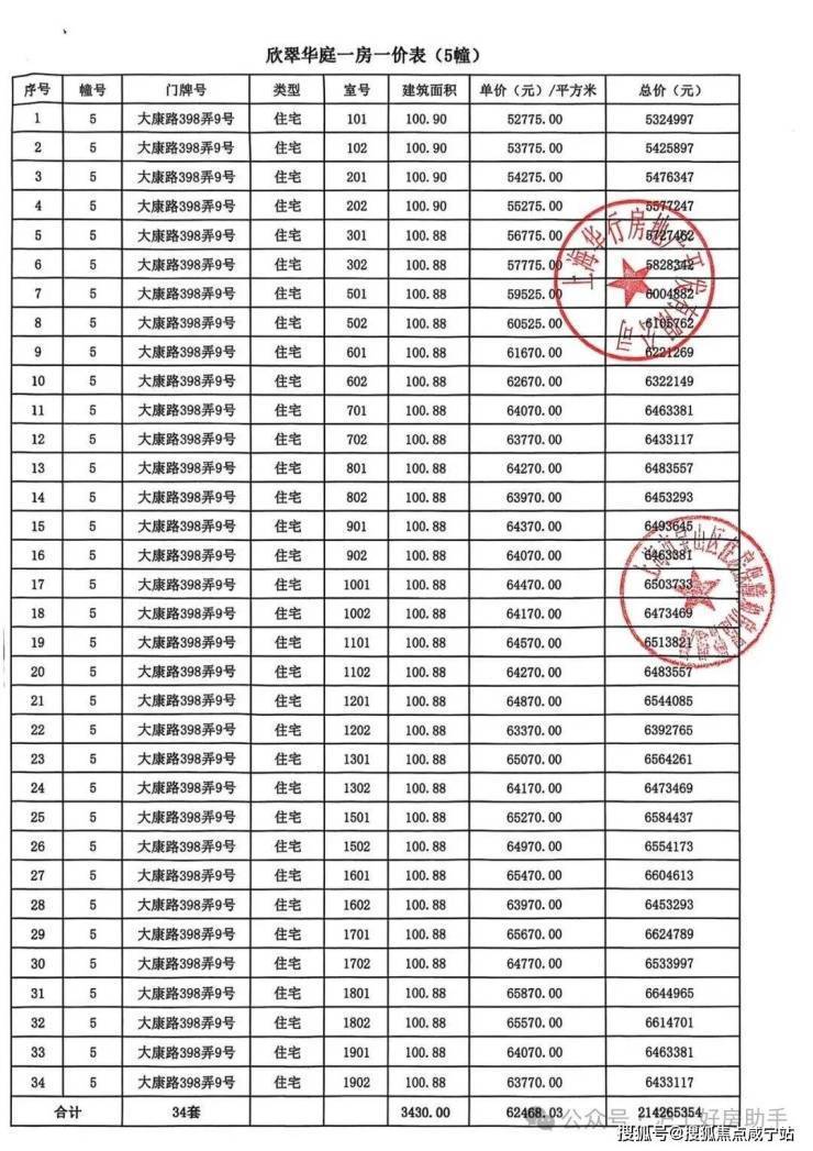 大华公园柏翠项目一房一价表▼