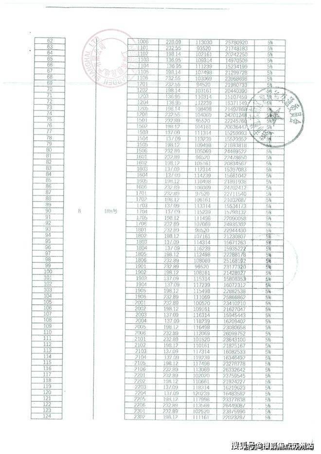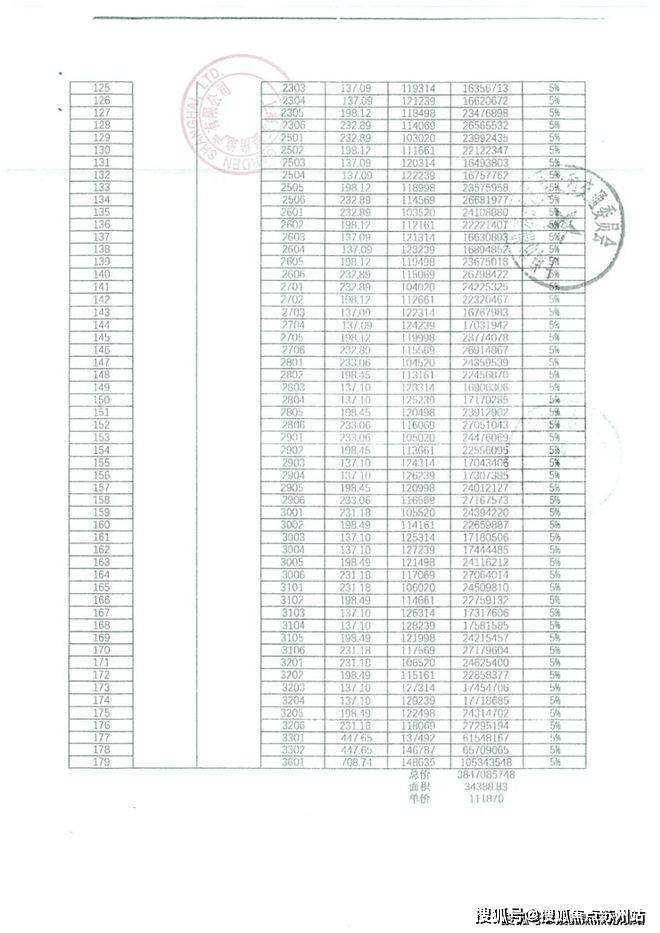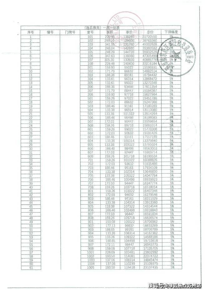 一房一价表如下