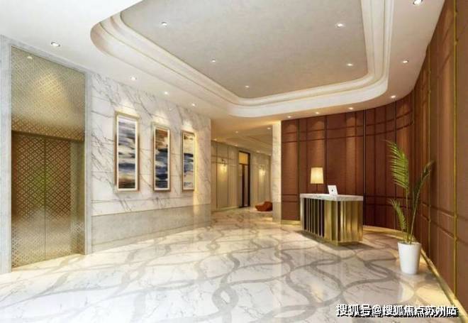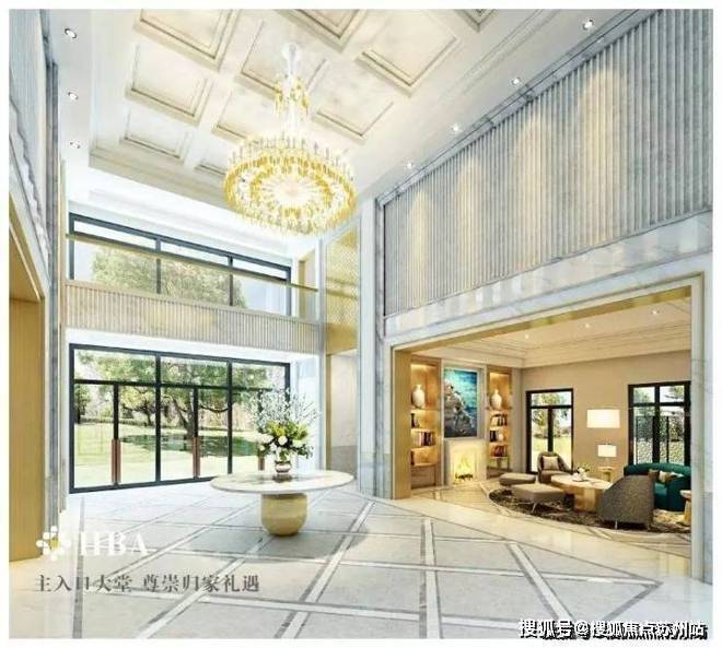 滨江一品苑的7米高入堂大厅。所有户型的厅、堂、卧室均采用落地观景窗,以保证充分采光及大面积景观视野。