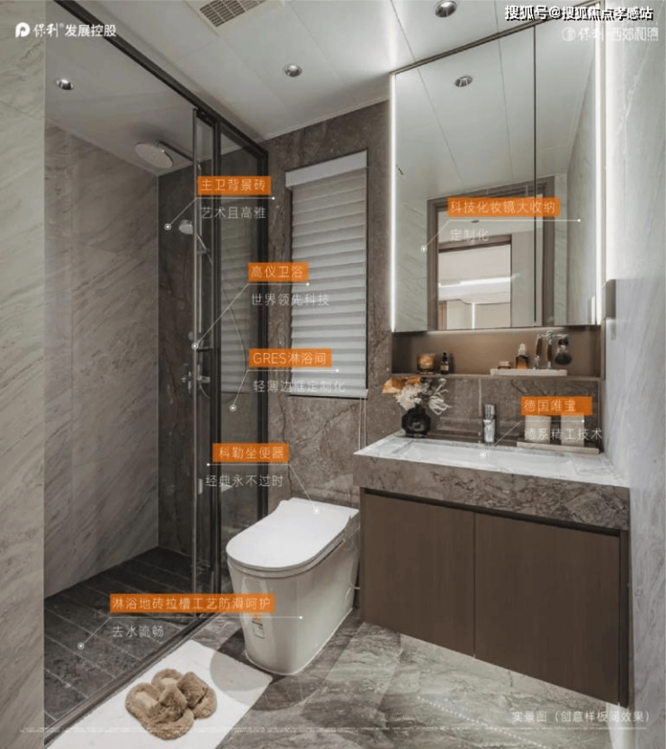 【保利西郊和煦官方售楼处电话:400-1010-064✨✨】次卫采取干湿分离设计,避免早上洗漱的“排队”,充分体贴日常需求。卫生间浴室配备品质4件套,同时置物架/镜柜/去水槽等匠心设计,也将卫浴间的精致拉满。
