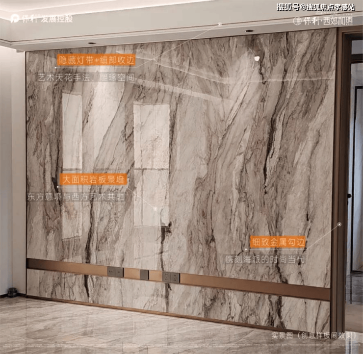 【保利西郊和煦官方售楼处电话:400-1010-064✨✨】全墙纸交标结合整幅岩板客厅景墙,以定制设计感提升空间立体感。