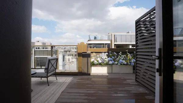 庭院中央采用巴西进口亚马逊绿奢石打造的流水景台,单价高达约4000元/㎡,配合灵感源自复兴公园紫藤廊架的景墙,潺潺水声与静谧光影,共同凝筑成一个静谧诗意的角落(项目红线外不作为交付承诺)