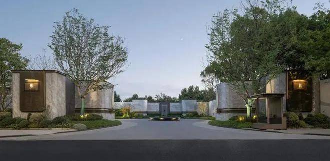 约100米长的私家礼道,两侧4米高景墙庄严夹道,整整齐齐的香樟树撑起"绿色的华盖"