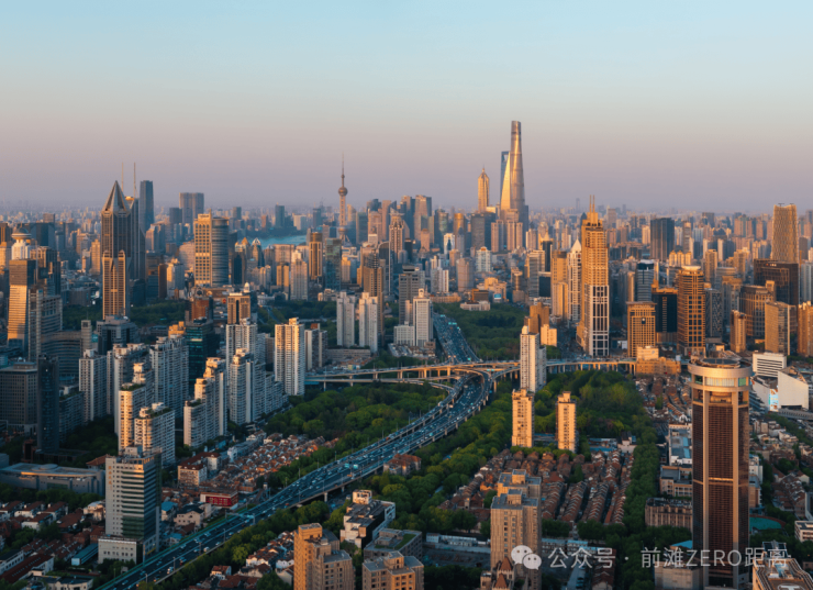 东瞰:延中绿地如翡翠铺展,新天地石库门群落与陆家嘴“三件套”同框;