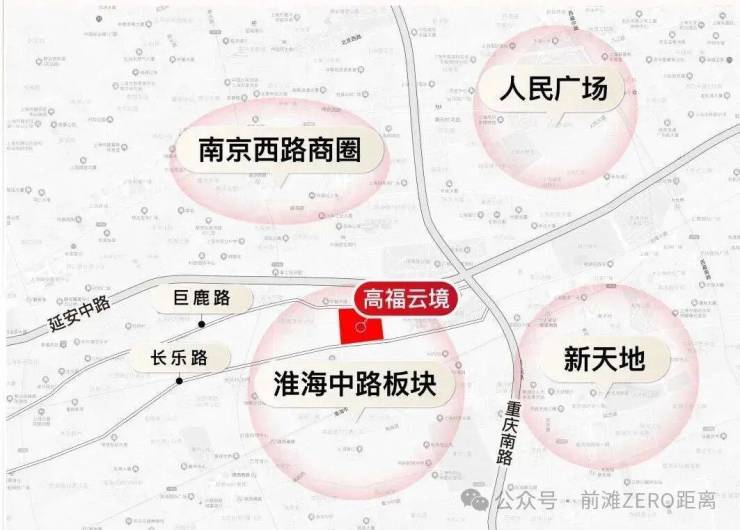 在具体位置上,高福云境位于上海百年核心商业区淮海中路商圈,北临巨鹿路,南临长乐路,正是无数上海人心目中的白月光“巨富长”街区。