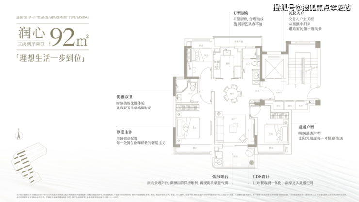 「虹桥润璟」售楼处营销中心☎:400-8855-420✔✔飞机户型真正地做到了南北通透,带来舒适的居住感。而且在约92㎡的空间内能做到三房两厅两卫的设计,真的是要花费很大的心力。