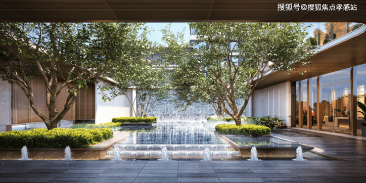 「虹桥润璟」售楼处营销中心☎:400-8855-420✔✔低容积率从源头上就给予设计师更多的景观创造空间。在园林设计上,虹桥润璟售楼处营销中心☎:400-8855-420✔✔溯源世界知名隐奢酒店的灵感。主入口处,结合格栅景墙与奢石水景,搭配层次感的绿化,形成了树影倒映的三面观景场所,实现归家动线的绝美视觉统一。