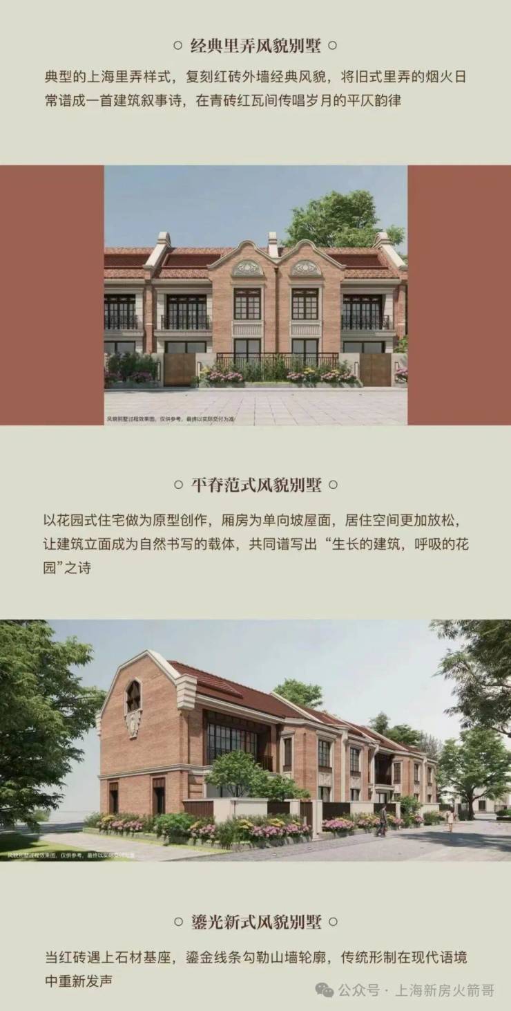 除了户型设计上的全面创新,项目还是全上海第一个多元化形态风貌别墅新房,引入了5大经典风貌建筑制式,让产品立面形态更加多样: