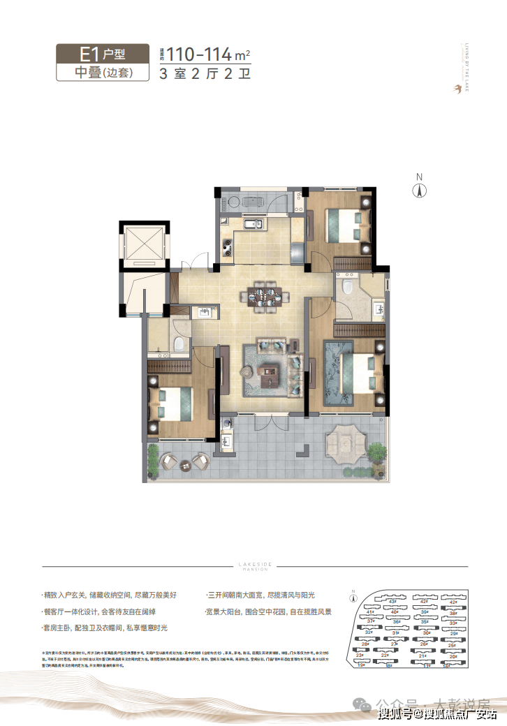 将新亚洲元素植入现代建筑语系,坡屋顶、深挑檐中式元素,采用大面蓝灰色LOW-E玻璃,大面宽、大开间、全明通透的湖景洋房,以“中央空调+新风系统+地暖”全系精装交付,诠释洋房生活的格调。