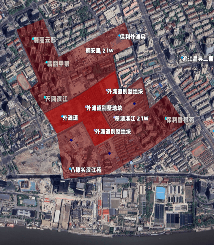 今年6月的土拍中,杨浦“单价地王”64街坊新地块锚定15万+!从地理位置上,它距离滨江约有1.2km,且离中心更远。