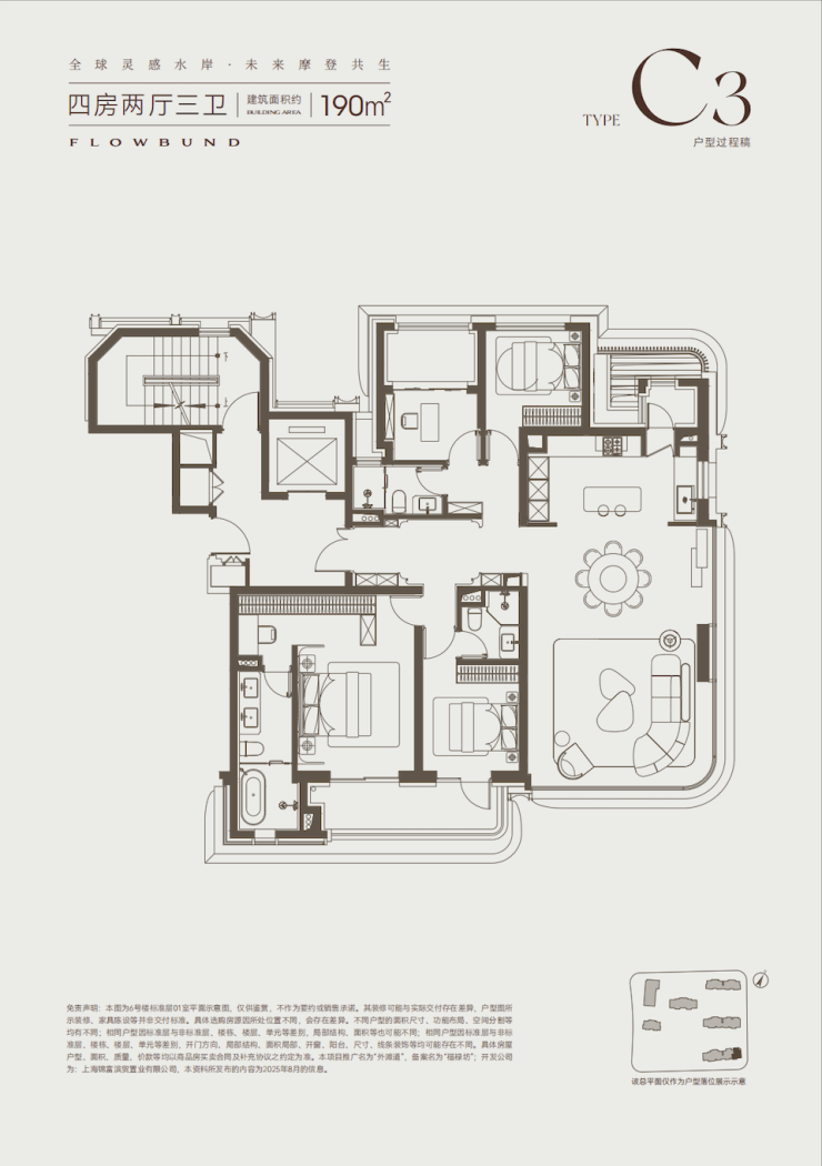 这套户型是首开的主力户型,非常适合二胎家庭或者三代同堂家庭。190㎡的边套全落地玻璃景观客厅+高区直面黄浦江,拥揽一线滨江资源与头等舱景观视野!