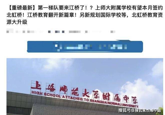 近日,嘉定江桥传出一个令人振奋的消息,上海第一梯队的上师大附属学校或将于本月与嘉定区和江桥相关部门正式签约,入驻江桥北虹桥地区,即上虹桥北虹之星。(具体情况等官方消息)