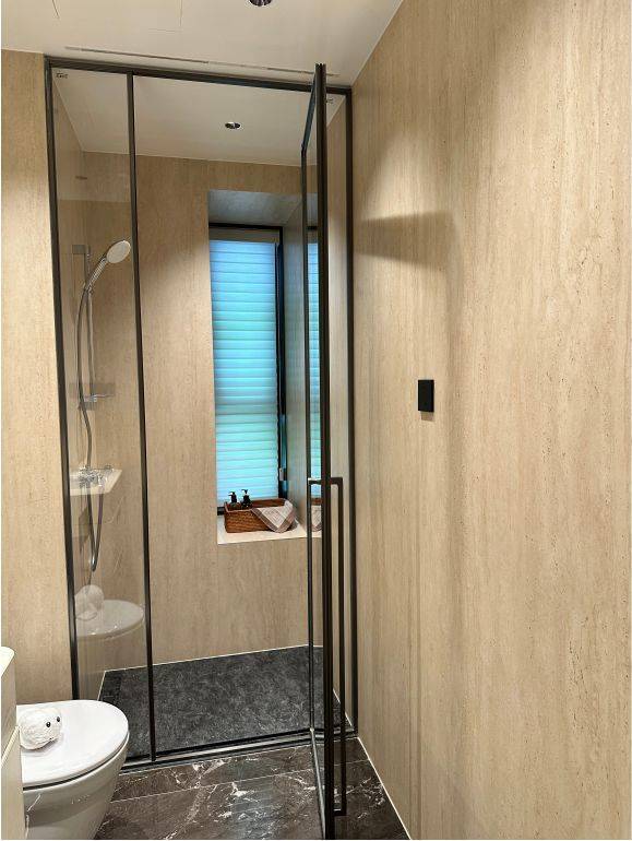 3.八种不同材质的奢石运用,卫生间地面全铺石材